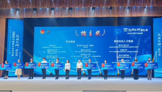 在我院黄俊杰老师的指导下,青年教师杨超凡带领团队,依靠扎实的理论基础,颠覆性的原创设计以及现场沉稳卓越的表现,与哈尔滨工业大学、天津大学等12所高校获得本赛道最高荣誉擂主奖,由团中央书记处书记王艺颁奖,同时每个擂主团队获得10万元奖励支票,大会给与我校杨超凡老师分享经验机会,体现出组委会对我校项目成果与团队实力的高度认可。