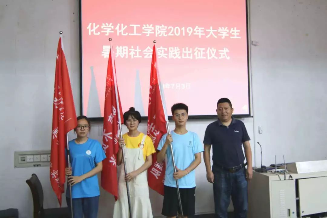 2019年7月3日上午10:30,化学化工学院2019年暑期社会实践出征仪式在志廉楼136会议室顺利举行。出席本次活动的有学院党委副书记徐青老师、正科级专职组织员俞兰芳老师、学生科副科长章江燕老师以及三支暑假社会实践队的全体成员,仪式由学院辅导员韩超峰老师主持。
